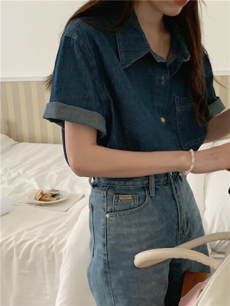 待望の再入荷です スリム 気質 トップス トレンド デニムシャツ 半袖ブラウス 快適である 新品