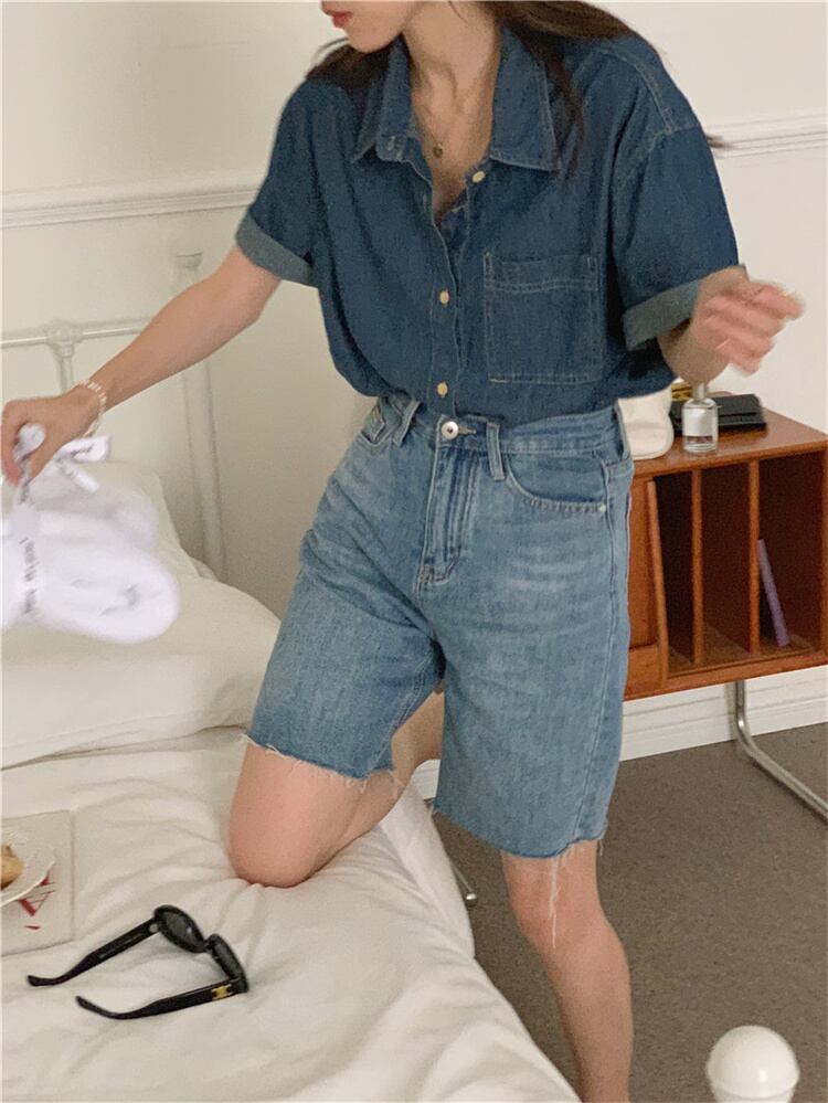 リピーターが多い 韓国ファッション トレンド デニムシャツ トップス 新品 半袖ブラウス 快適である