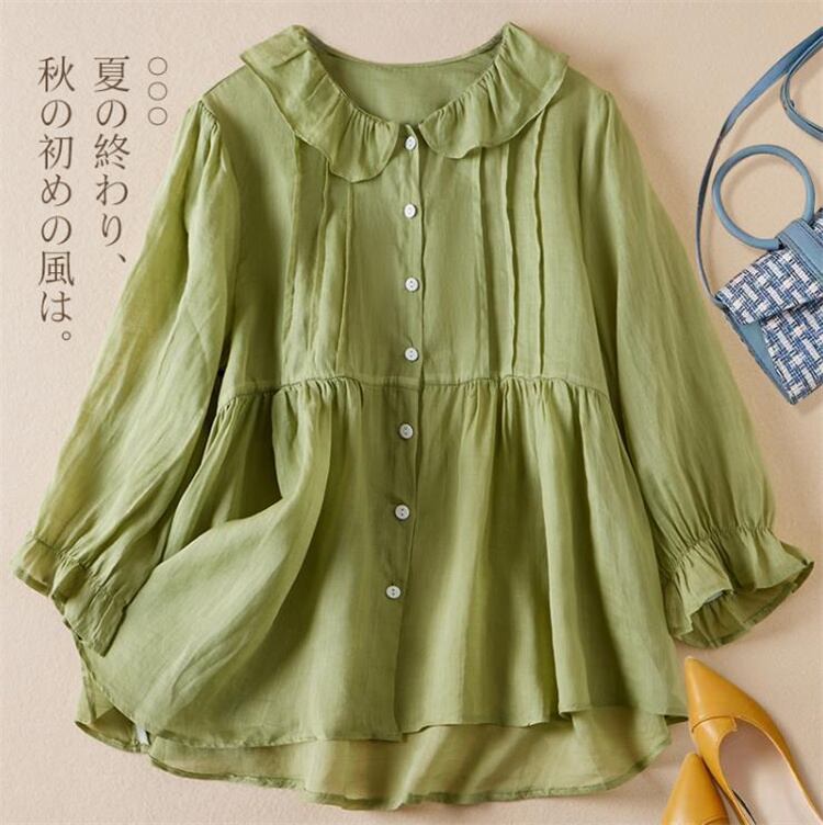 在庫限りお見逃しなく 薄手 6色オプション 上着 半袖 怠惰な風 カジュアル 人形の襟 トップス 綿麻 シャツ