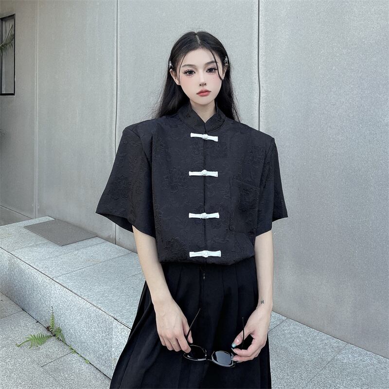 トップス シャツ 中国服 チャイナ服 半袖 カジュアルシャツ カンフーシャツ レディース