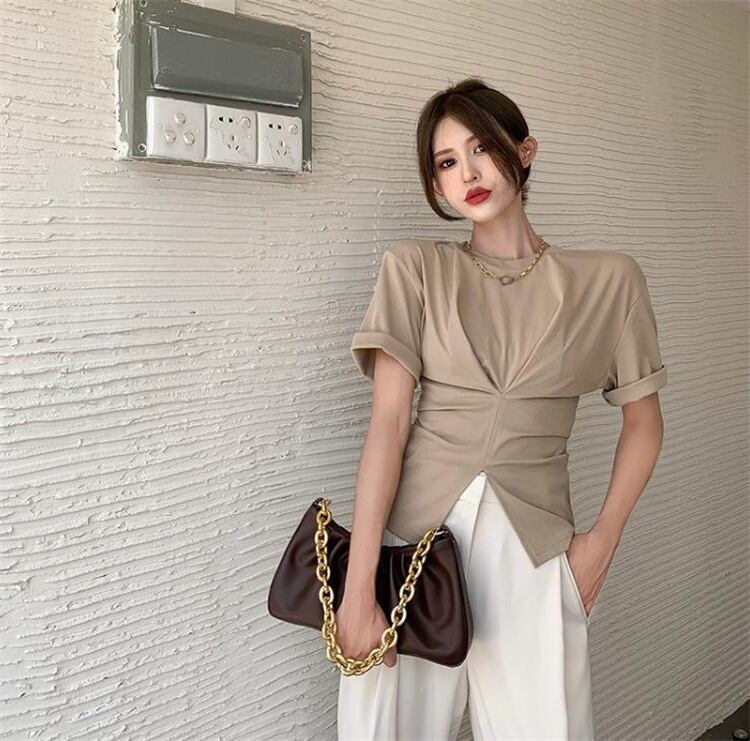 楽に穿ける、キレイめアイテム 半袖 Tシャツ トップス イレギュラー 上着 スプリット デザインセンス