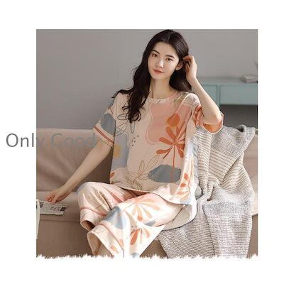 パジャマ ルームウェア レディース 春夏 半袖 パジャマ ルームウェア 花柄 七分丈ワイドパンツ上下セット 可愛いパジャマ 女性 部屋着 寝間き大きいサイズ 快適