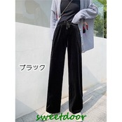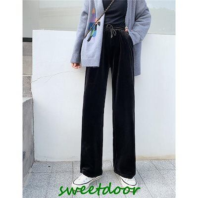 ベロアワイドパンツ 裏起毛 厚手 暖かい 冬 ボトムス リラックス ロングパンツ ルームウエア 部屋着 レディース かわいい カジュアル パンツ