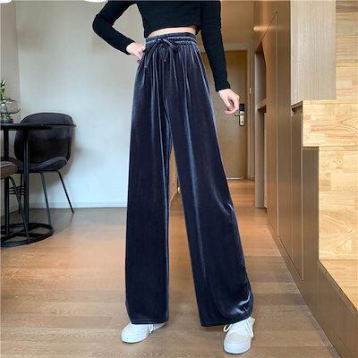 ボトムス パンツ レディース ワイドパンツ ベロア 大人可愛い きれいめ シンプル 大人 おしゃれ とろみ感 抜け感 S M L XL 2XL 3XL 4XL 大きいサイズ ウエストゴム 個性的