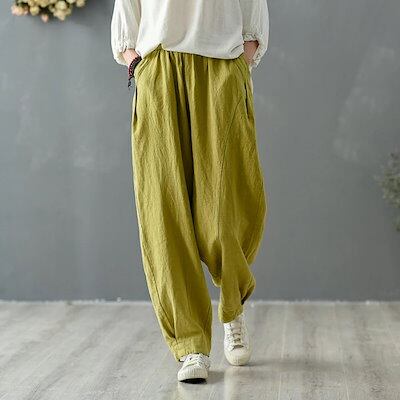 リネン混 サルエルパンツ レディース ワイドパンツ アラジンパンツ コットンリネン バルーンパンツ エスニック ボトムス ナチュラル 体型カバー 着やせ カジュアル シンプル 無地 大人可愛い | gizshop