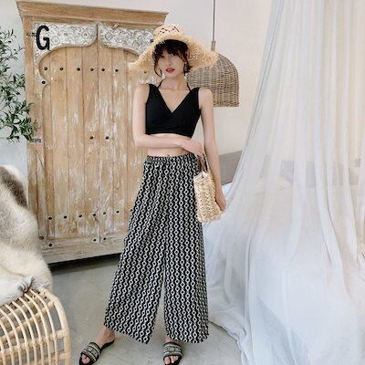 水着 レディース 体型カバー 水着 タンキニ Vネック ビキニ ワイドパンツ 3点セット 20代 30代 40代 ママ水着 ロングパンツ バックシャン カシュクール風 可愛い お洒落 くすみカラー ボ | gizshop
