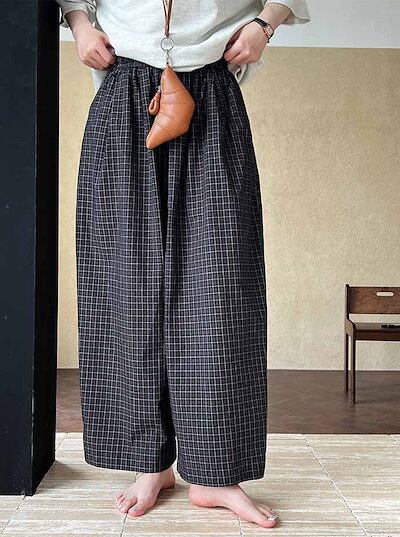 バルーンパンツ レディース コクーンパンツ サーカスパンツ 大きいサイズ ボトムス 綿100% パンツ コットン チェックパンツ ワイドパンツ イージーパンツ ズボン 大人可愛い ナチュラル カジュア | gizshop