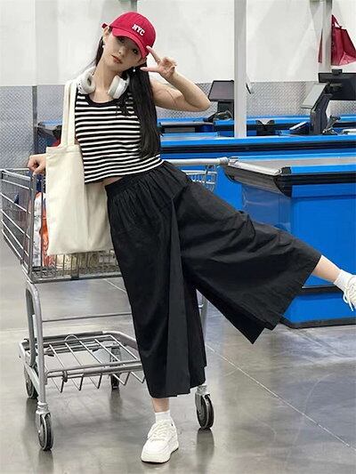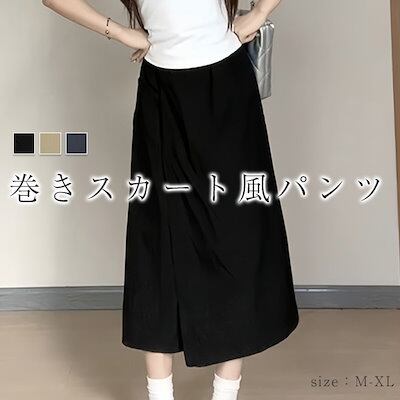 ワイドパンツ レディース ガウチョパンツ 巻きスカート ラップスカート 9分丈 カフェパンツ 春 夏 春夏 涼しい ボトムス 無地 シンプル ゆったり 体型カバー ウエストゴム 大きいサイズ 可愛い