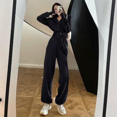 おしゃれ 【2枚購入で 可愛い パーカー ワイドパンツ レディース 着痩せ セットアップ セット 3oo円OFF!】2024新作 二点セット 運動 セットアップ