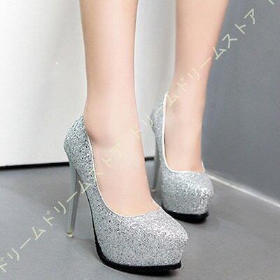 ハイヒール ピンヒール パンプス ラウンドトゥ キラキラ キャバパンプス 厚底 レディース ドレスシューズ パーティー 結婚式パンプス 疲れにくい 美脚パンプス