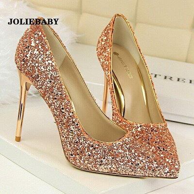 パンプス 痛くない 結婚式 レディース ポインテッドトゥ キラキラ ウェディングシューズ ハイヒール ピンビール ブライダル パーティー キャバ嬢 発表会 演奏会