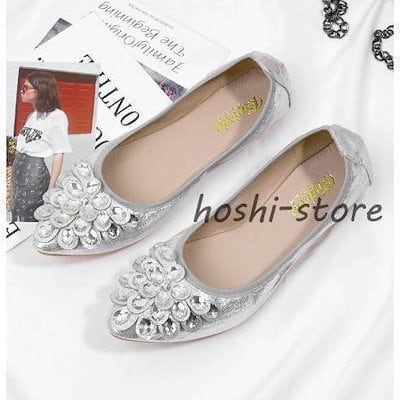 パンプス 結婚式 靴 ブライダルシューズ レディース ローヒール 痛くない フラットパンプス ポインテッドトゥ べたんこ 疲れにくい キラキラ