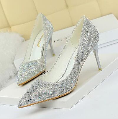 ビンヒールキラキラハイヒール 0-250選択可パンプスパーティーシューズ 8cmヒール ポインテ
