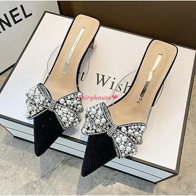 ミュールサンダル ポインテッドトゥ シューズ レディース ?風 太めヒールサンダル サポミュール ハイヒール 履きやすい パーティー 通勤 キラキラ オシャレ美脚