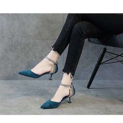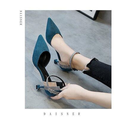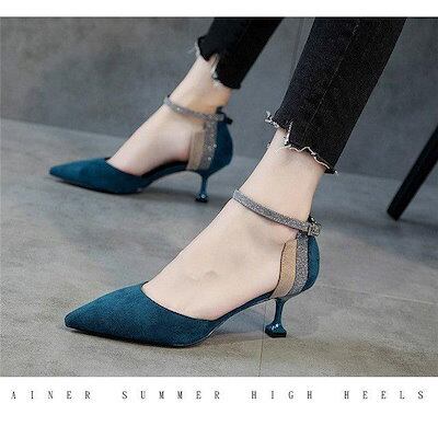 ハイヒール ポインテッドトゥ シューズ ストラップピンヒール 美脚 履きやすい 痛くない 靴 レディース 春夏 キラキラ スエード調パンプス パーティーシューズ