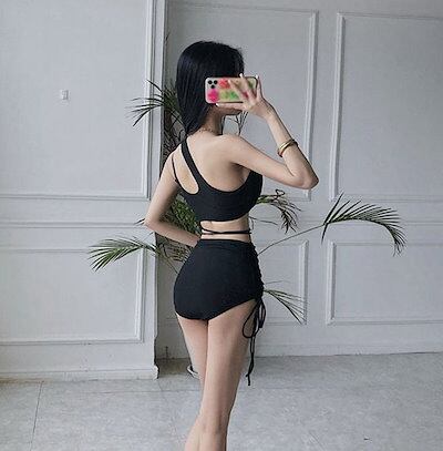 水着 レディース ビキニ ワンショルダービキニ アシンメトリー 体型カバー セパレート ハイウエスト ブラック 無地 ワンカラー シンプル カジュアル 海 プール リゾート 温泉 かわいい セクシー | gizshop