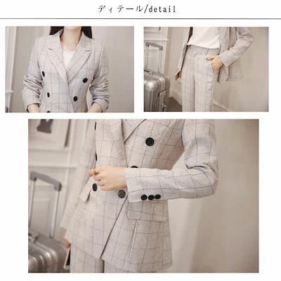 チェック柄スーツ セットアップ レディース ビジネス アンクル丈 テーラードジャケット パンツスーツ 2点セット スリム カジュアル キュート 可愛い フェミニン きれいめ 上品 エレガント お出かけ | gizshop