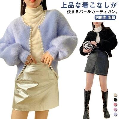 メガ割 パールラインニットカーディガン ニットカーディガン レディース モコモコ ふわふわ リブニット セーター羽織り 羽織 アウター 体型カバー ニット 前開き アウター シンプル カジュアル 長袖 | gizshop