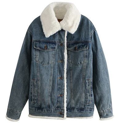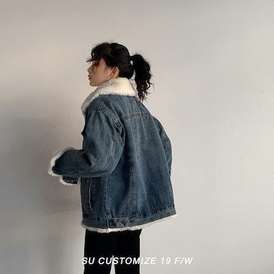 デニムジャケット 裏ボア フェイクファー レディース 厚 厚手 裏起毛 Gジャン ジャケット アウター デニム 立ち襟 スタンドカラー モコモコ ふわふわ 防寒 保温 オーバーサイズ かわいい ビッ | gizshop