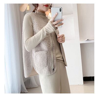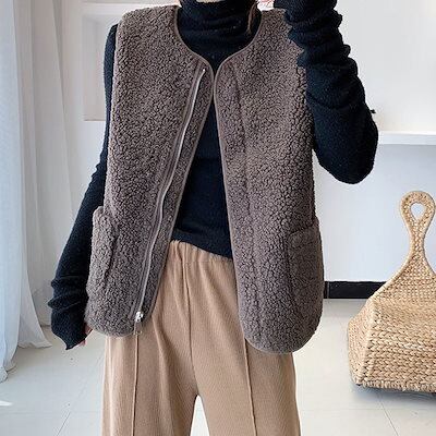 フリース ベスト レディース 前開き 秋冬 トップス ジレ モコモコ ショートベスト 厚手 前開き アウター ノースリーブ 冬物 ポケット付き カジュアル オシャレ 防寒 ファスナー ラウンド | gizshop