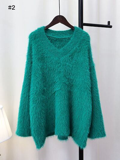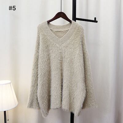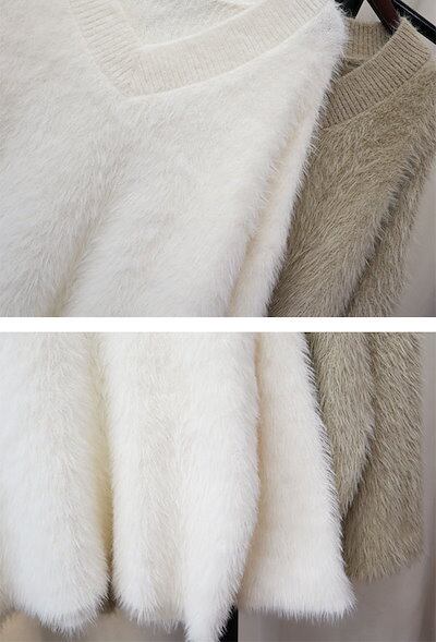 ニット セーター レディース ファーニット ファー モコモコ ふわふわ トップス セーター プルオーバー 長袖 vネック ゆったり リブニット 柔らかい セーター アウター 体型カバー カットソー シ | gizshop
