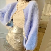 パールラインニットカーディガン ニットカーディガン ファーカーディガン ファー ニット パール調 レディース モコモコ ふわふわ リブニット 柔らかい セーター羽織り 羽織 アウター 体型カバー カッ | gizshop