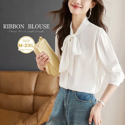 ブラウス ボウタイ 長袖 リボン トップス リボンタイ ワイシャツ レディース シフォン シャツ オフィス シワになりにくい ビジネス 仕事 カジュアル フォーマル 女性 事務服 制服 結婚式 入園式 | gizshop