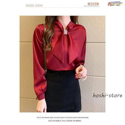 2枚購入で 2oo円FF!ブラウス レディース きれいめ 40代 新作 オシャレブラウス シルク風シャツ 長袖トップス リボンネックブラウス 大人 通勤 ゆったり シャツ30代 50代 | gizshop