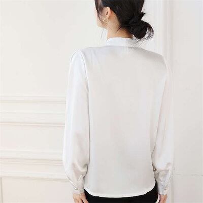 ブラウス ボウタイ レディース トップス シャツ きれいめ インナー スーツインナー ビジネススーツ 白シャツ ボウタイカラー 春夏 秋冬 長袖 リボン ボウタイ リボンタイ ボウタイリボン パールボ | gizshop