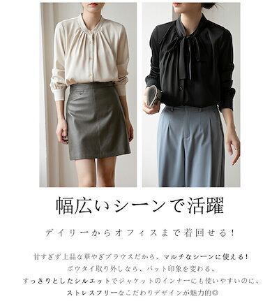 シャツ ボウタイ ブラウス 長袖 レディース オフィスシャツ リボン付き 取り外し可能 2way 長袖シャツ シーズインナー ボウタイシャツ ゆったり ギャザー バンドカラーシャツ 大きいサイズ 滑る | gizshop
