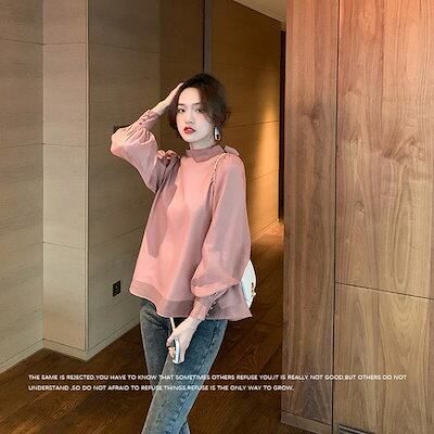 ブラウス レディース ボウタイブラウス ボウタイ リボンブラウス ボリューム袖 袖ギャザー ふんわり袖 長袖 大人 無地 個性的 体型カバー 春夏新作 おしゃれ パフスリーブ シフォンブラウス トップ | gizshop