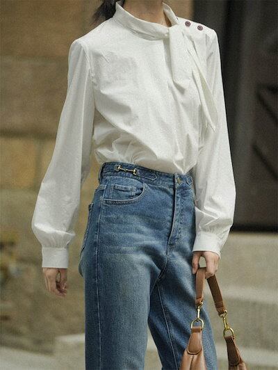 シャツ ブラウス レディース トップス シャツブラウス ボウタイシャツ チュニック シャツ デザインシャツ 長袖 長そで オフィス リボン チェック 大きいサイズ ゆったり 春秋 ビジネス 仕事 カジ | gizshop