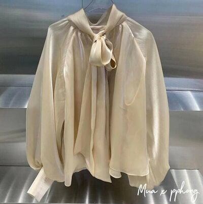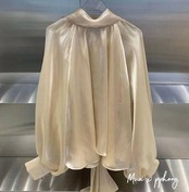 ブラウス ボリューム袖 レディース 長袖 秋 春 冬 トップス シャツ レディース 長袖 きれいめ オフィスカジュアル 無地 春夏 リボン つや感 シースルー リボンカラー ママコーデ 韓国 韓国フ