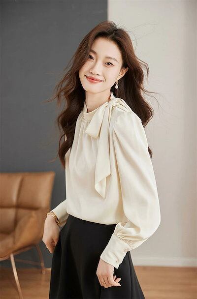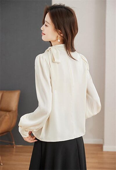 ボウタイ ブラウス きれいめ 長袖 レディース 春秋 キレイめ トップス シャツブラウス フォーマル オフィス リボン 結びリボン 結び襟 リボンタイ サテン ブラウス 着まわし ボウタイリボン シン | gizshop
