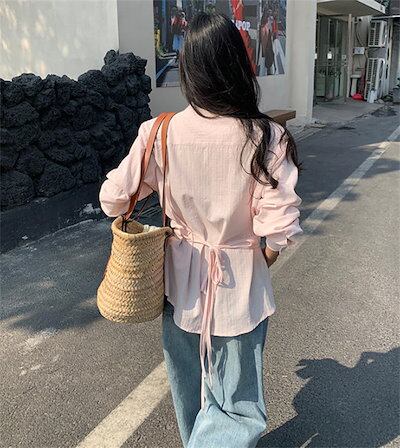 フェイクレイヤード シャツ レディース ブラウス 長袖 綿 フェミニン 上品 切り替え トップス シャツブラウス ゆったり スーツインナー オフィス フォーマル サイドスリット リボン付き 大人 お洒