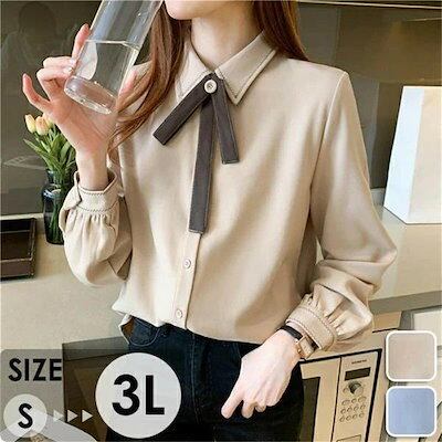 シャツ ブラウス レディース 春 秋トップス シャツ 長袖 リボン 無地 ゆったり 着痩せ 春シャツ ナチュラル 大人 通勤 旅 30代 40代 コットン 大人 通勤 通学 かわいい カジュアル大き | gizshop