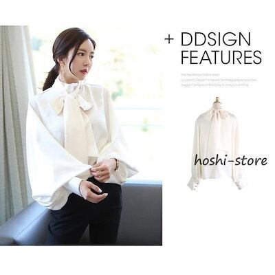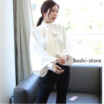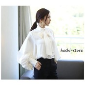 新作入荷気質 長袖シャツ ブラウス レディース オフィス フォーマル 40代 おしゃれ 白ブラウス パフスリーブ シフォン 長袖シャツ リボン 韓国風 トップス 通勤 大人 ゆったり 2色 | gizshop