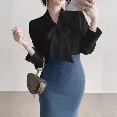 ホワイト シフォン シャツ レディース 長袖 2025 春と秋 新しいスタイル ブラウス 蝶ネクタイ キャリア 気質 レディ ブラウス レースアップ 韓国ファッション