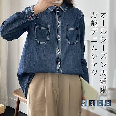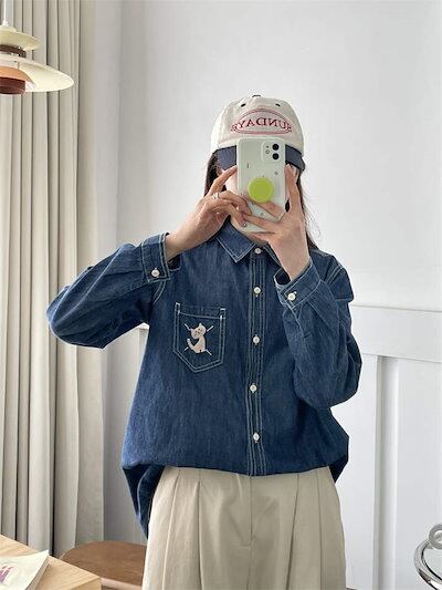 デニム シャツ レディース 長袖 トップス ブラウス ゆったり 刺? ねこ ねこ刺? 可愛い きれいめ お洒落 春 夏 秋 デニムシャツ ショート丈 アウター 羽織り カーディガン 通勤 カジュアル | gizshop