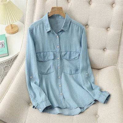 シャツ レディース トップス ブラウス 春 夏 長袖 七分袖 接触冷感 涼しい ワイシャツ シャツジャケット アウター 夏アウター 冷感シャツ 無地 ゆったり 胸ポケット 体型カバー ひんやり 紫外線 | gizshop