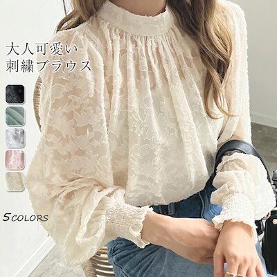 シャツ レース ブラウス レディース トップス ハイネック 長袖 レース Tシャツ 花柄 透かし彫り インナー シースルー 透け感 刺繍 ゆったり 重ね着 春 夏 秋 プルオーバー 薄手 カジュアル | gizshop
