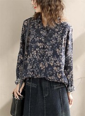 シャツ レディース 花柄シャツ シャツブラウス 大人 春 夏 秋 冬 長袖 総柄 花柄 ナチュラル ゆったり トップス ブラウス フラワー 草花 プリント 綿 おしゃれ フォーマル お出かけ コットン