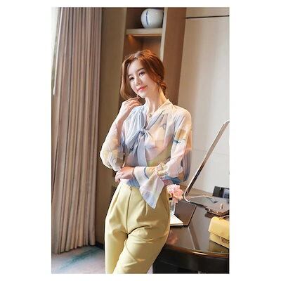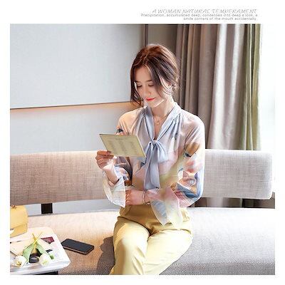 ブラウス レディース きれいめ 40代 春夏秋新作 オシャレブラウス シフォンシャツ 長袖トップス リネンネックブラウス 大人 通勤 ゆったりシャツ韓国風 UVカット