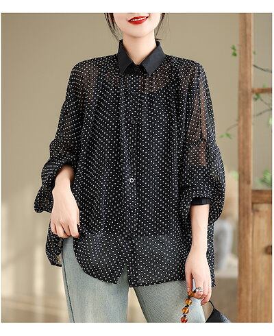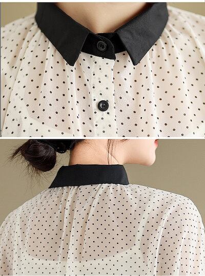 シアーシャツ レディース 長袖 UVカット シースルーシャツ シアーブルゾン 透け感 シャツ 羽織り ドット柄 水玉 ゆったり 大きいサイズ 透け感 ボリューム袖 おしゃれ こなれ感 光沢感 春 夏 | gizshop