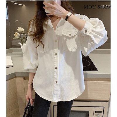 デニムシャツ ブラウス シャツ 長袖 t シャツ トップス レディース 長袖 前開き ゆったり カジュアル オフィス 大きいサイズ 着痩せ 春 夏 通勤