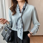 気質 春秋冬でもブラウス シアーシャツ秋新作リボン気質シャツ レディース通勤長袖レディースファッションShirtトップスレイヤードトップス