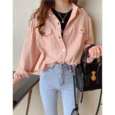 【人気品超目玉】デニムシャツブラウスシャツ長袖tシャツトップスレディース長袖前開きゆったりカジュアルオフィス大きい着痩せ春夏通勤
