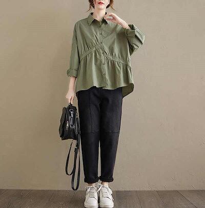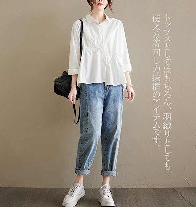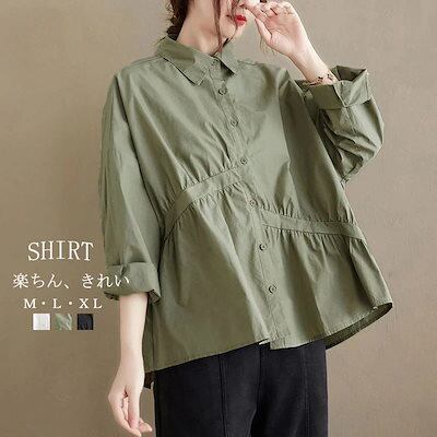 シャツ長袖春夏長袖シャツギャザー羽織り薄前開き夏白シャツシャツフレアレディースシャツブラウストップスフレアブラウス長袖シャツ襟付き羽織もの無地ブラウスゆったりAラインカジュアル風シンプルきれいめ綿春夏 | gizshop