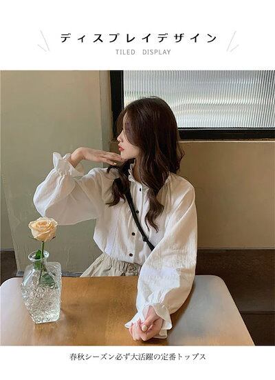 ギャザーブラウス長袖レディースフリルブラウスプリンセスブラウスレトロ長袖ブラウスゆったりカジュアルシャツ体型カバートップス前開き薄姫春長袖シャツ秋ホワイトシャツ大人可愛いオフィス白 | gizshop
