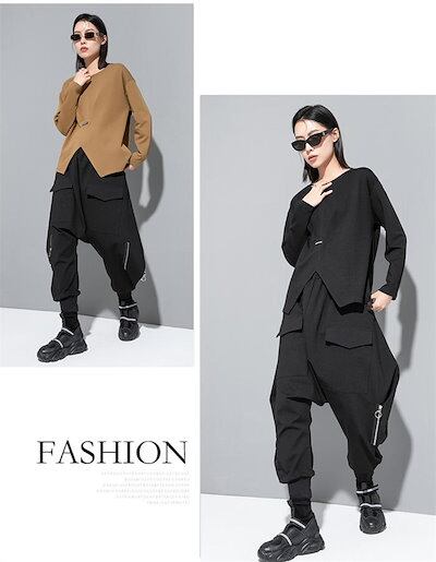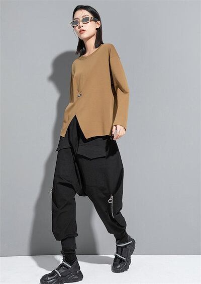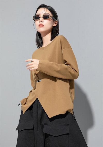 tシャツ レディース 長袖 おしゃれ フロントスリット tシャツ レディース カットソー 春 秋 冬 クルーネック シンプル トップス プルオーバー トレーナー 無地 サイドドロスト デザイン 個性的 | gizshop